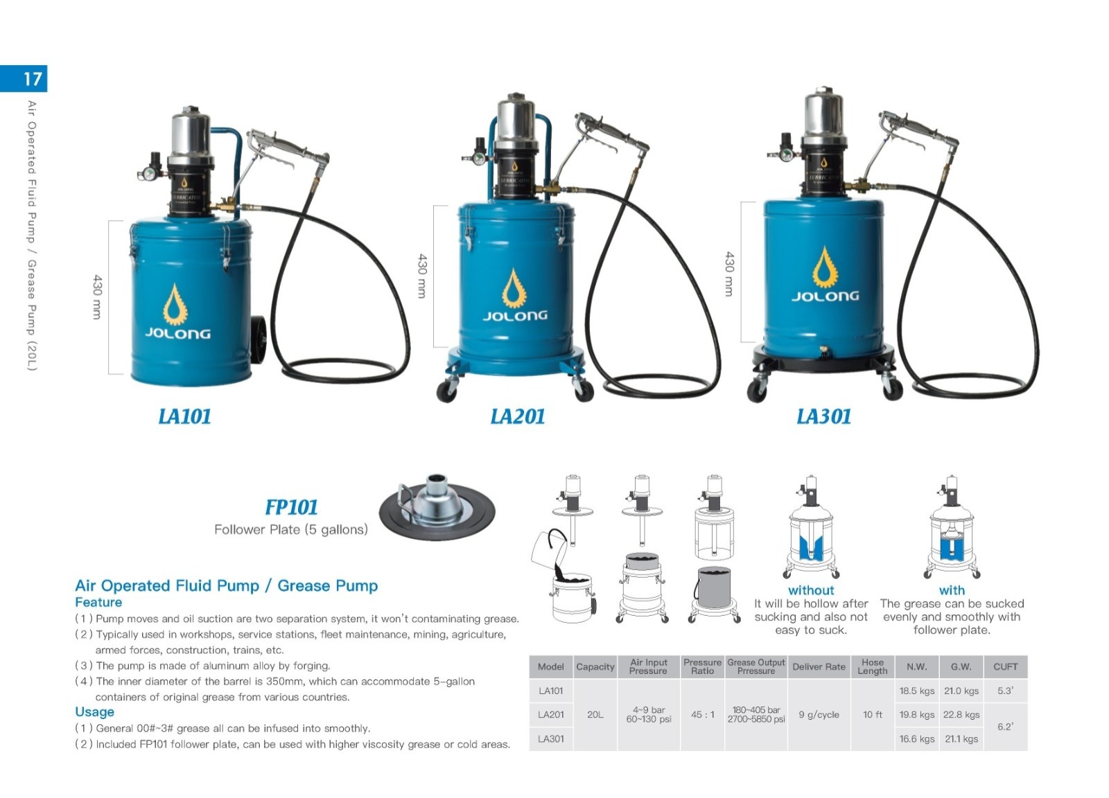 (2)A pressure plate is used. The grease can be sucked evenly and smoothly with follower plate.