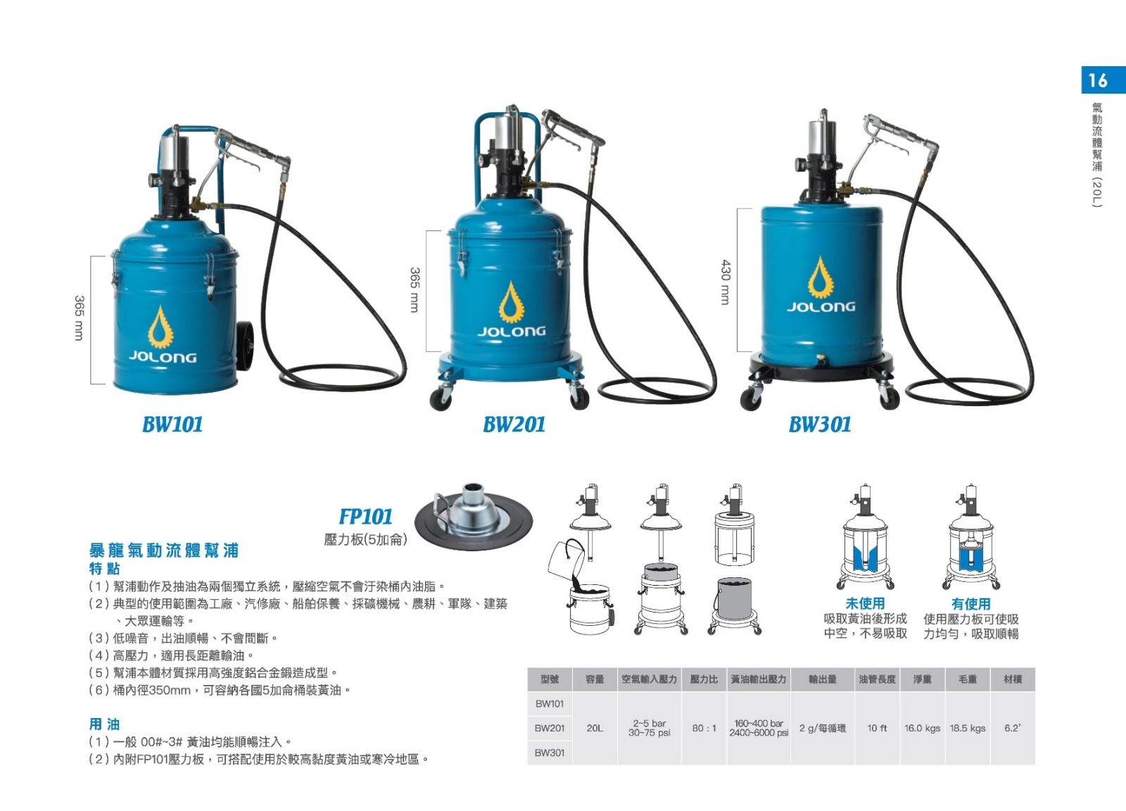 (1) 一般 00# ~ 3# 黃油均能順暢注入。| 型號 | BW201 |