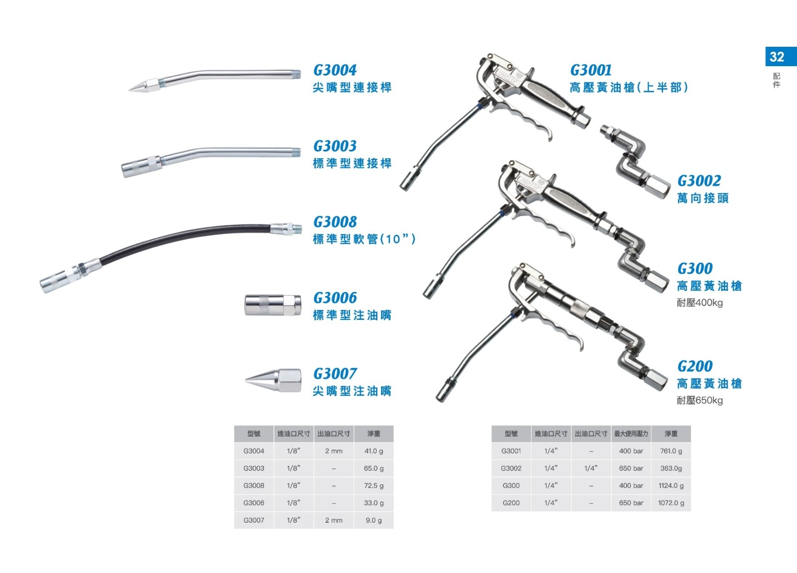 (1) 標準型軟管附有G3006注油嘴。