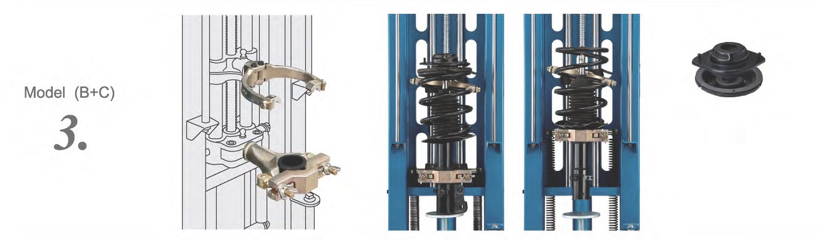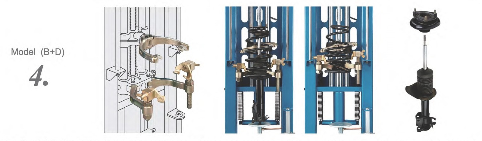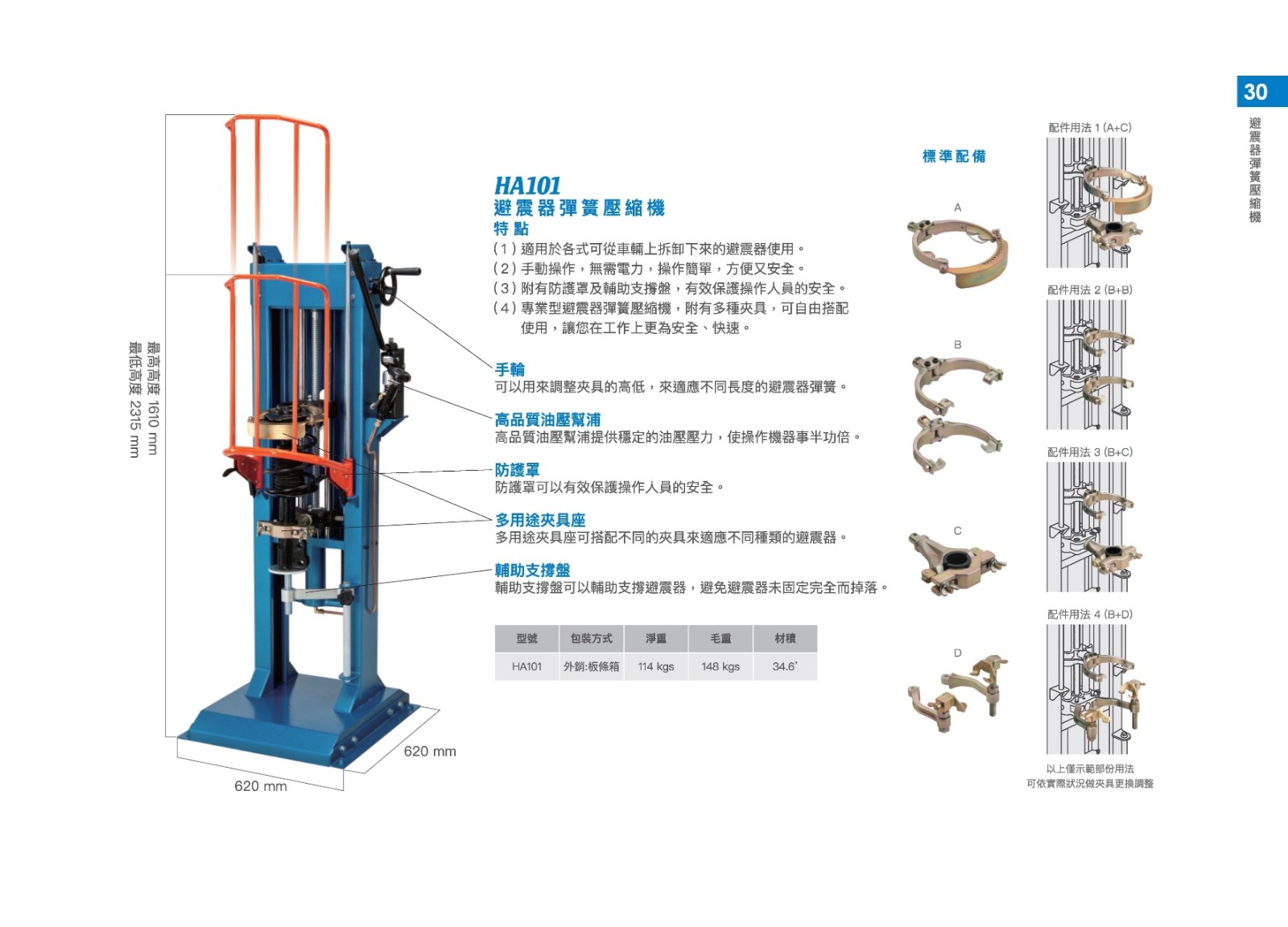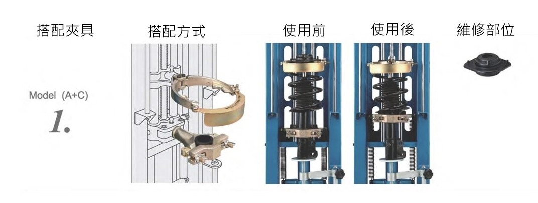 (4)專業型避震器彈簧壓縮機,附有多種夾具,可自由搭配使用,讓您在工作上更為安全、快速。