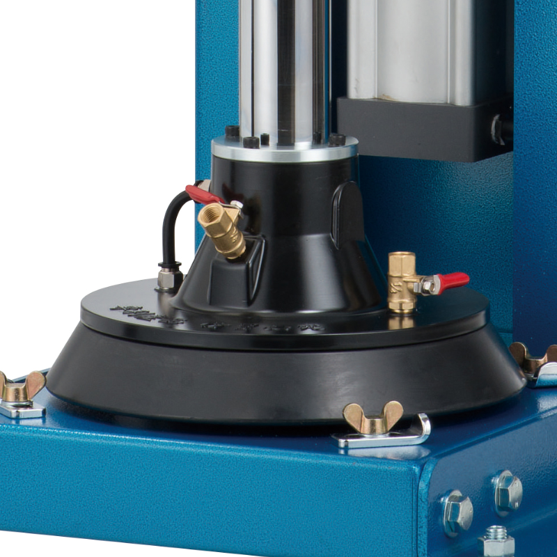 (2)特殊的壓力板設計,能使壓力板與容器更能緊密結合,可輕鬆應對具有錐度之容器(Ø295~Ø275)及高黏度流體,並可大幅減少容器內部、底部之殘餘材料。