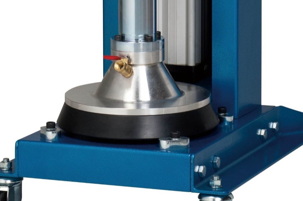 (2)特殊壓力板設計,能使壓力板與容器更緊密結合,可使用有錐度的容器(Ø295~Ø275mm)及高黏度流體,並可大幅減少容器內部、底部之殘餘材料。