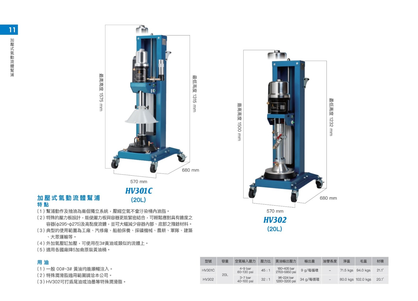 (4)外加氣壓缸加壓,可使用在3#黃油或類似的流體上。