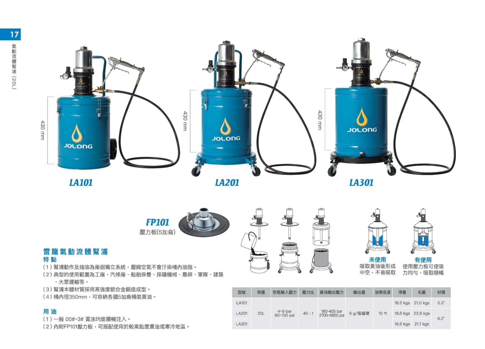 (1) 一般 00# ~ 3# 黃油均能順暢注入。| 型號 | LA301 |