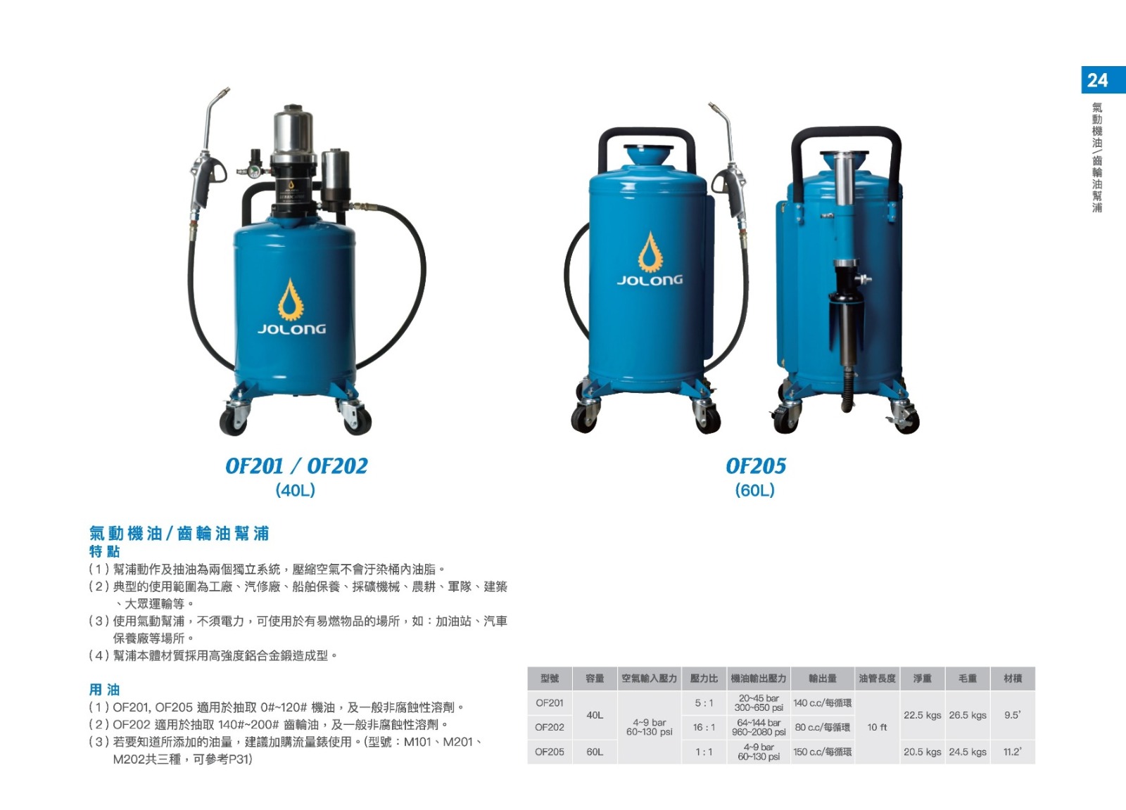 (1) 若要知道所添加的油量,建議加購流量錶使用。(型號:M101、M201、M202)| 型號 | OF201 |