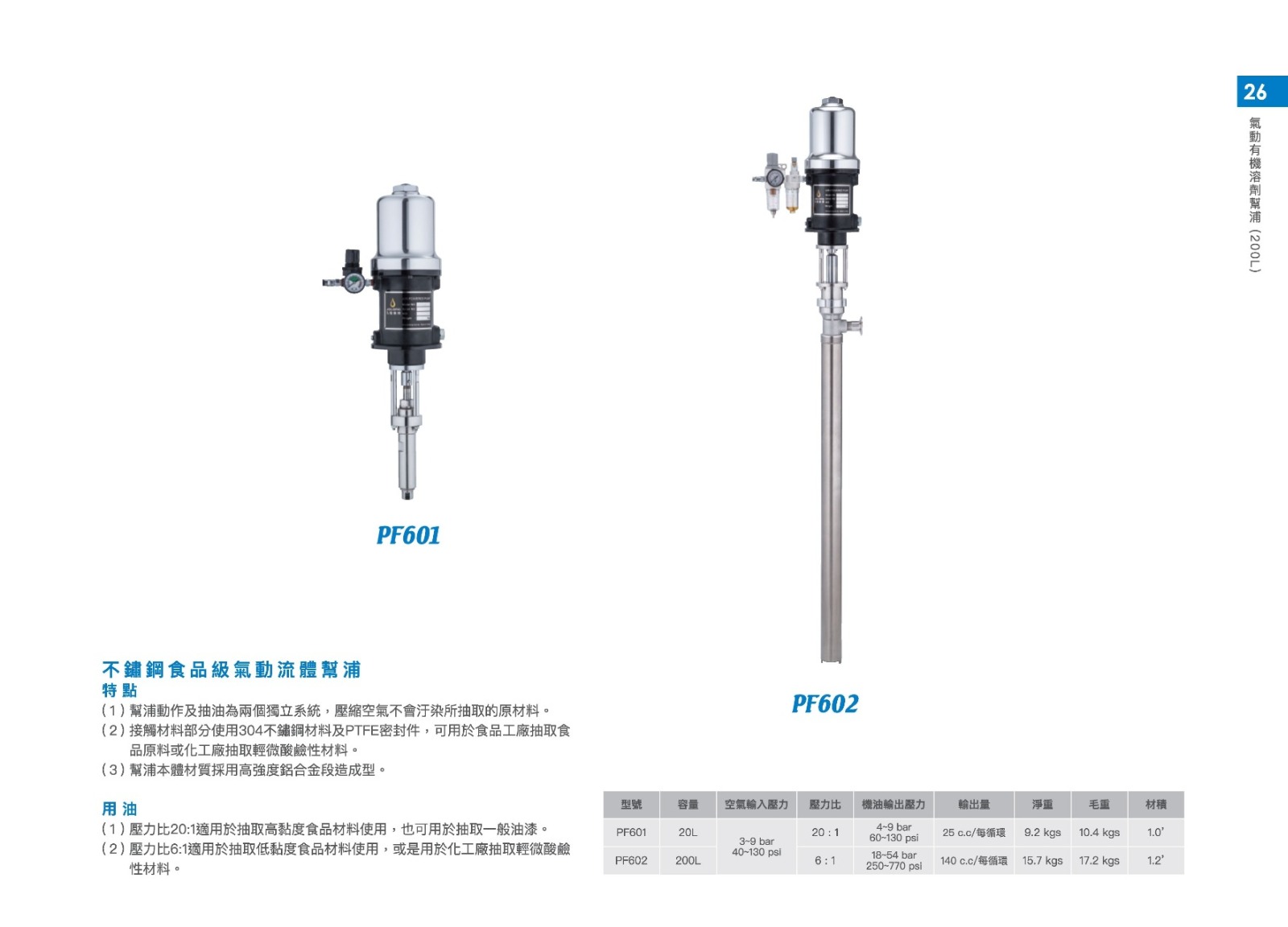 (1) 幫浦作動及抽油為兩個獨立系統,壓縮空氣不會汙染所抽取的原材料。